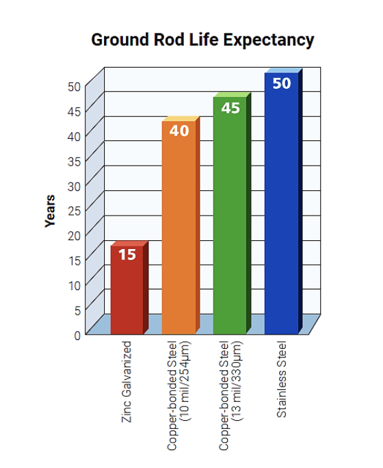 Note: The lifespan of an earth electrode can be significantly reduced in low-resistivity soils due to their higher corrosivity.