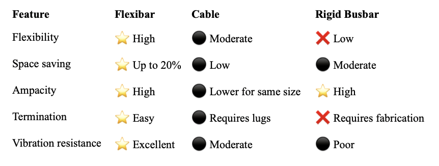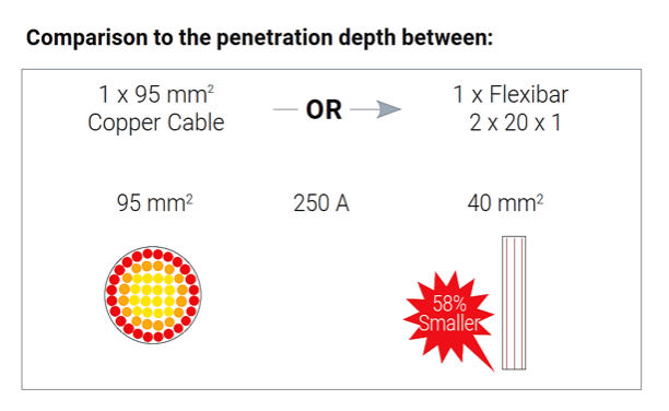 Flexibar therefore provides superior performance compared to traditional cables or rigid busbars of the same cross-section.