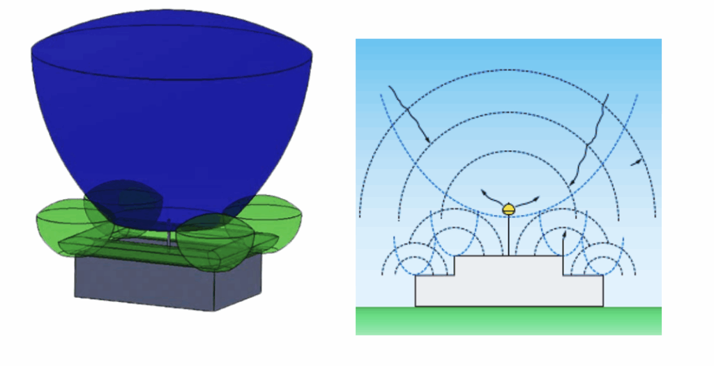 ENHANCED AIR TERMINALS WITH CVM PLACEMENT, SUCH AS THE DYNASPHERE, OFFER A ZONE OF PROTECTION CONSISTENT WITH CLAIMED INTERCEPTION EFFICIENCY LEVELS OF 84% – 99%, BASED ON THE DESIRED LEVEL OF PROTECTION.