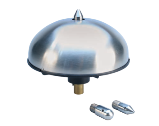 The nVent ERICO Interceptor is based on similar technology to the nVent ERICO Dynasphere, but its smaller shape limits its applications to those structures with a smaller footprint such as a cluster of antennae or those that are less than 20 m tall (65 ft). As the nVent ERICO Interceptor tip is limited to small areas or structures under 20 m tall, it is supplied with one standard tip shape.